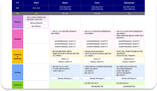 이 외에 문법훈련, 듣기훈련, OMR 기능으로 초등, 중등, 고등, 수능까지 다양한 연령대가 학습이 가능합니다.