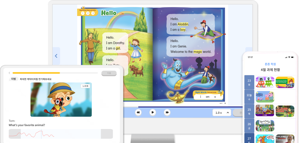 영어 외에도 일본어, 중국어, 국어, 과학, 사회 등 에서도 활용 가능한 유연한 제작 포맷을 가지고 있습니다.